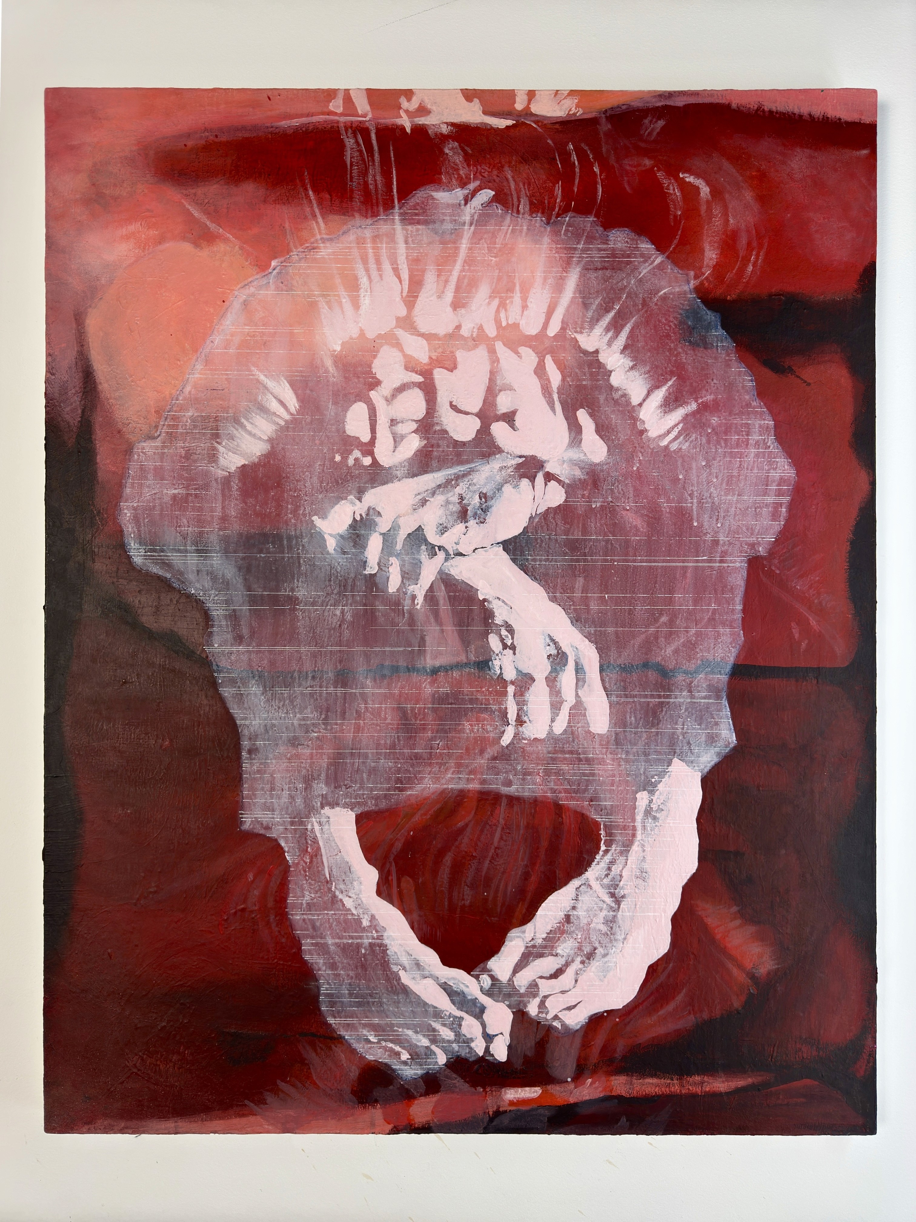 This artwork captures the emotional landscape of these instances. It depicts my figure curled up in quiet restraint, a visual representation of my forced silence. In contrast, the subtle parting of my upper lip symbolizes the internal urge to speak, the unspoken words yearning for release.