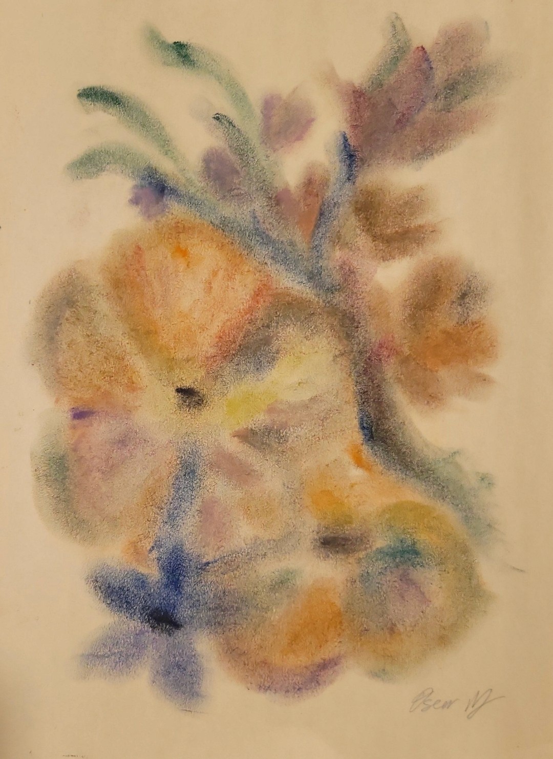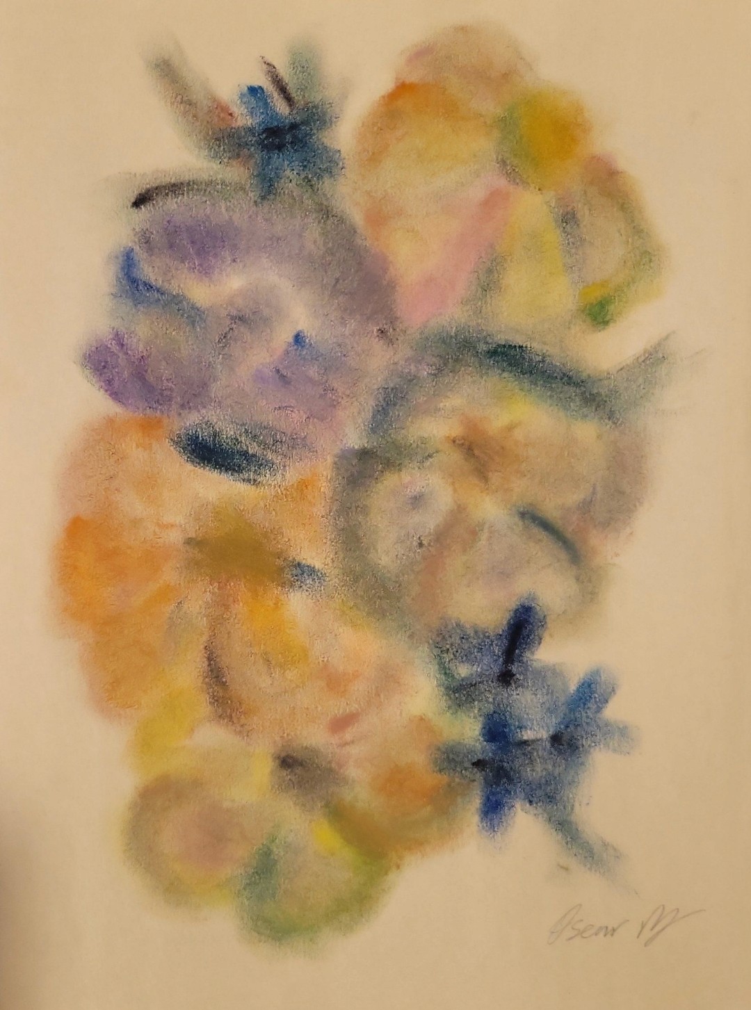 My artistic technique is founded on fluid finger drawing. I paint and draw using my own hands, employing my fingers as the primary tool to create abstract representations of flowers within compositions that intertwine through form and color.