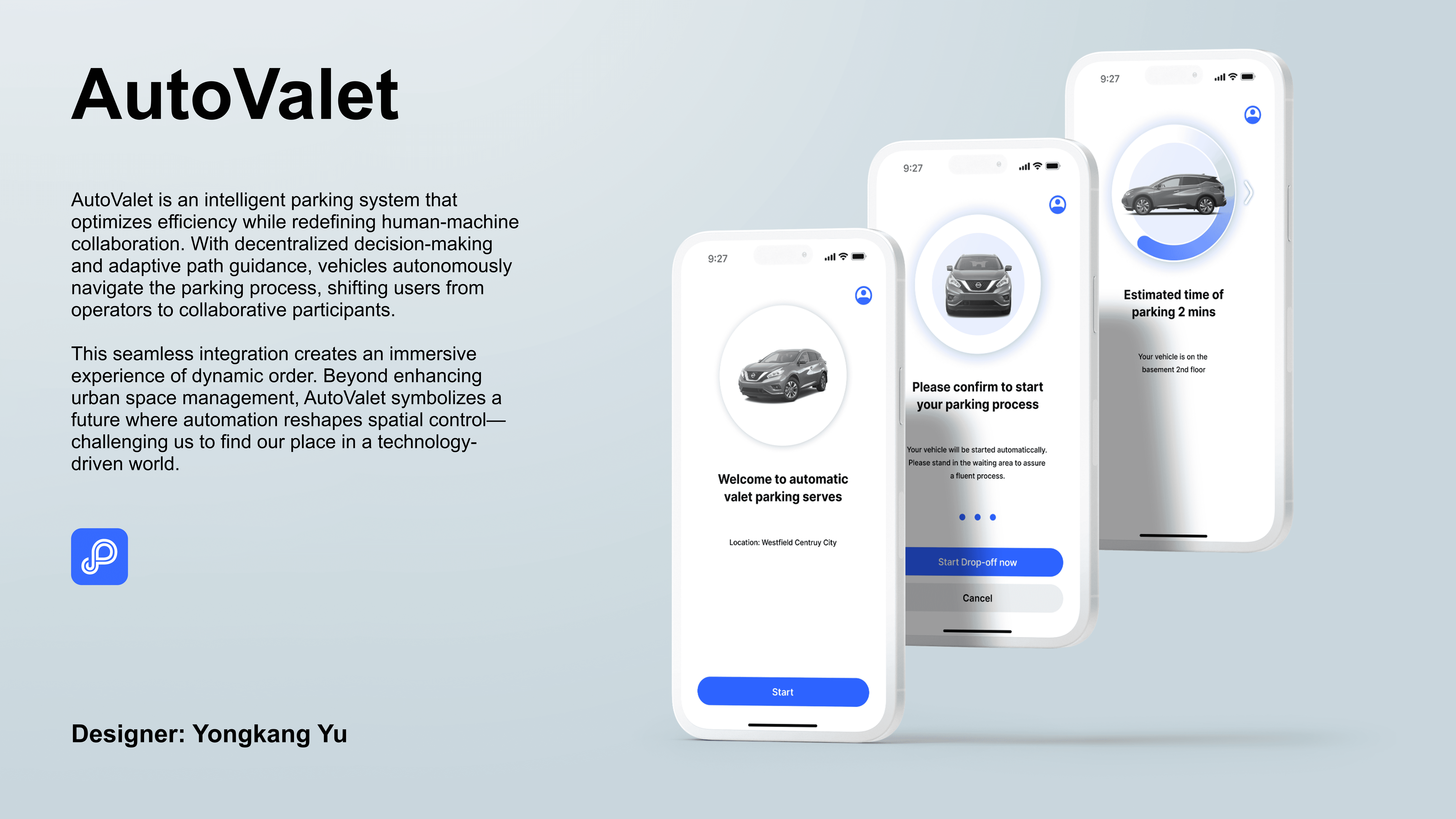 My artistic practice blends automation with human-centric experiences, bridging the gap between efficiency and emotional connection. Inspired by spatial dynamics, behavioral psychology, and emerging tech, I challenge conventional interaction models to create more fluid and immersive user experiences. Projects like AutoValet exemplify this approach, transforming automated valet parking into an intuitive, human-friendly system.