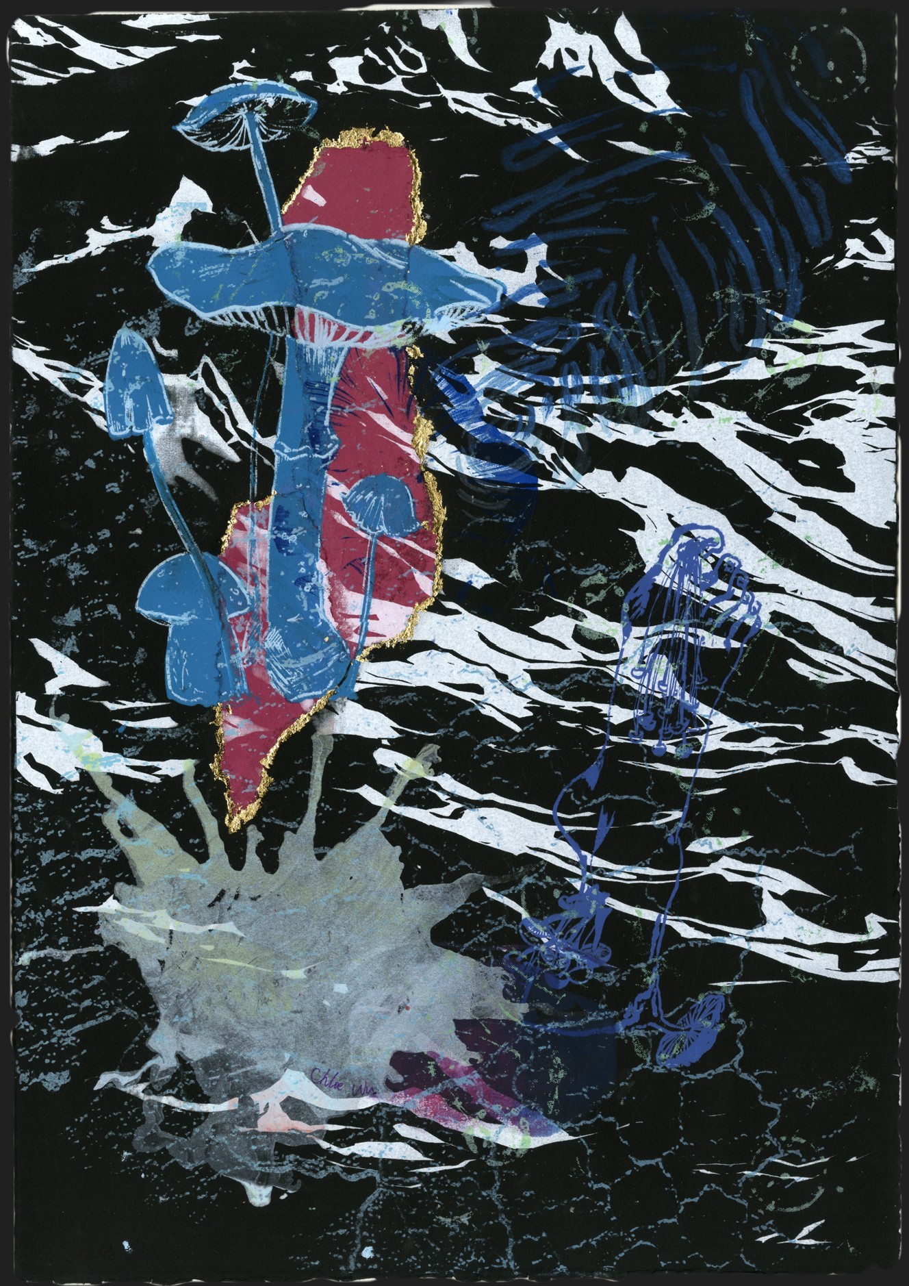Chloe's current exploration centers on the spine—not just anatomically, but as a metaphor for bearing history, identity, and transformation. She uses printmaking as a mindful, tactile way to merge logic and emotion, reflecting on how vision, neurodiversity, and perfectionism shape the self. The work becomes both introspective and communal, a meditation on our shared fragility and strength. Through Chloe's art, she seeks those quiet, universal moments where the boundaries between self and other dissolve, leaving only the shared rhythm of being alive.