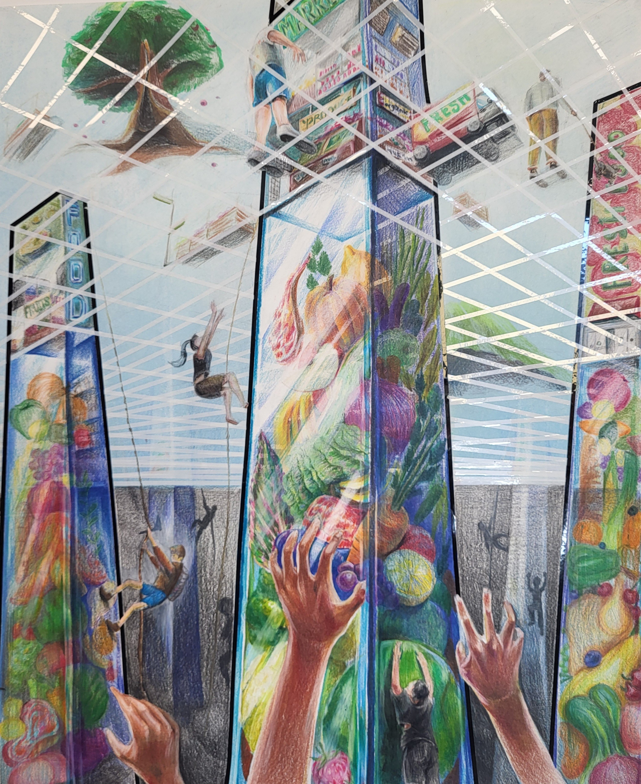 Chanel Hwang is an artist who uses her work to explore pressing issues in society, particularly focusing on inequality and sustainability within the food supply chain. Through her drawings, she meticulously details the journey of food from farm to table, visually exposing the problems that arise along the way. Chanel aims to raise social awareness and inspire change through interactive projects that allow audiences to engage and participate actively.
