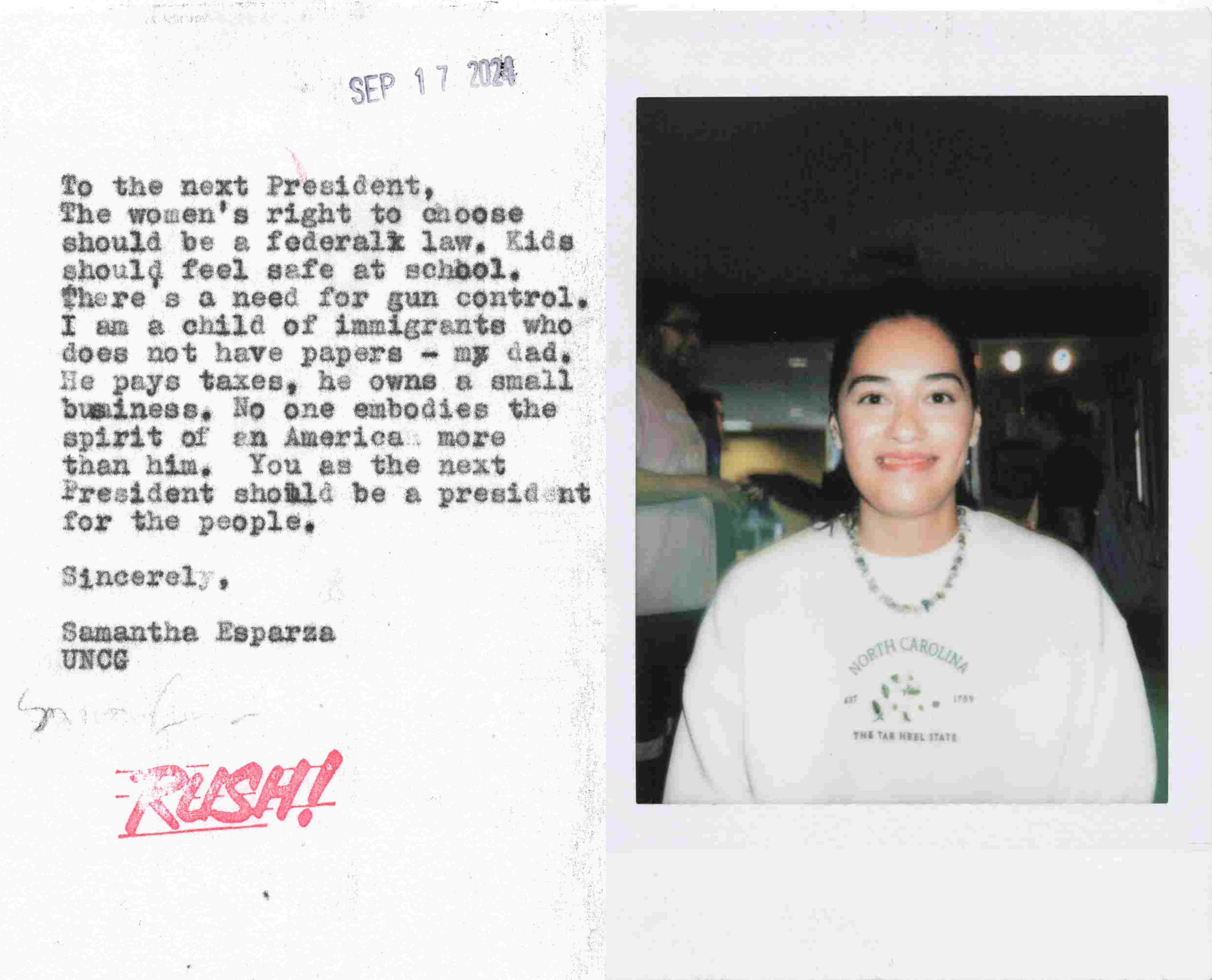 Sheryl Oring seeks to display excerpts from her I Wish to Say project, in which she travels across the country typing postcards for people to send to the next U.S. President. This work resonates deeply with the theme "On the Critical Point: Wanderlust and Nostalgia in the New Age," as it captures the voices of everyday individuals expressing their hopes, concerns, and dreams through hand-typed postcards. The project serves as a bridge between humanism and the evolving post-human world, highlighting the tension between personal human experiences and the rapid technological shifts that shape contemporary life.
