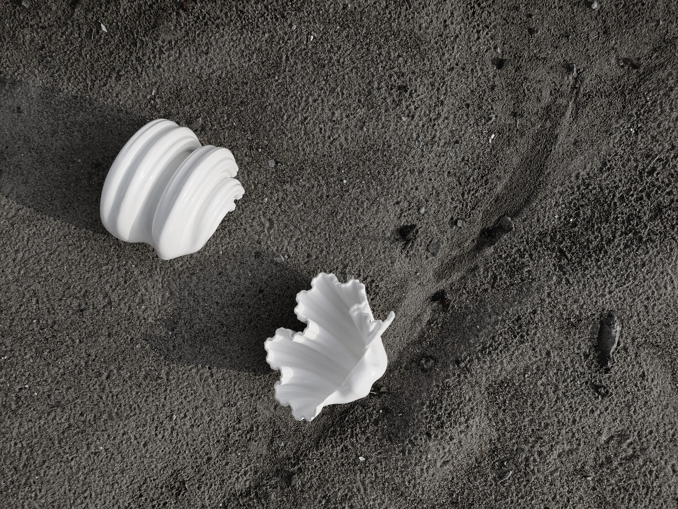 Rooted in a mathematical and rational framework, the artist employs computational design methods to generate a series of geometric forms. These forms vary in height, shape, deflection, and orientation based on specific input parameters. Through the use of ceramic 3D printing technology, the work achieves precise dimensional accuracy and strength, resulting in elegant ceramic pieces.