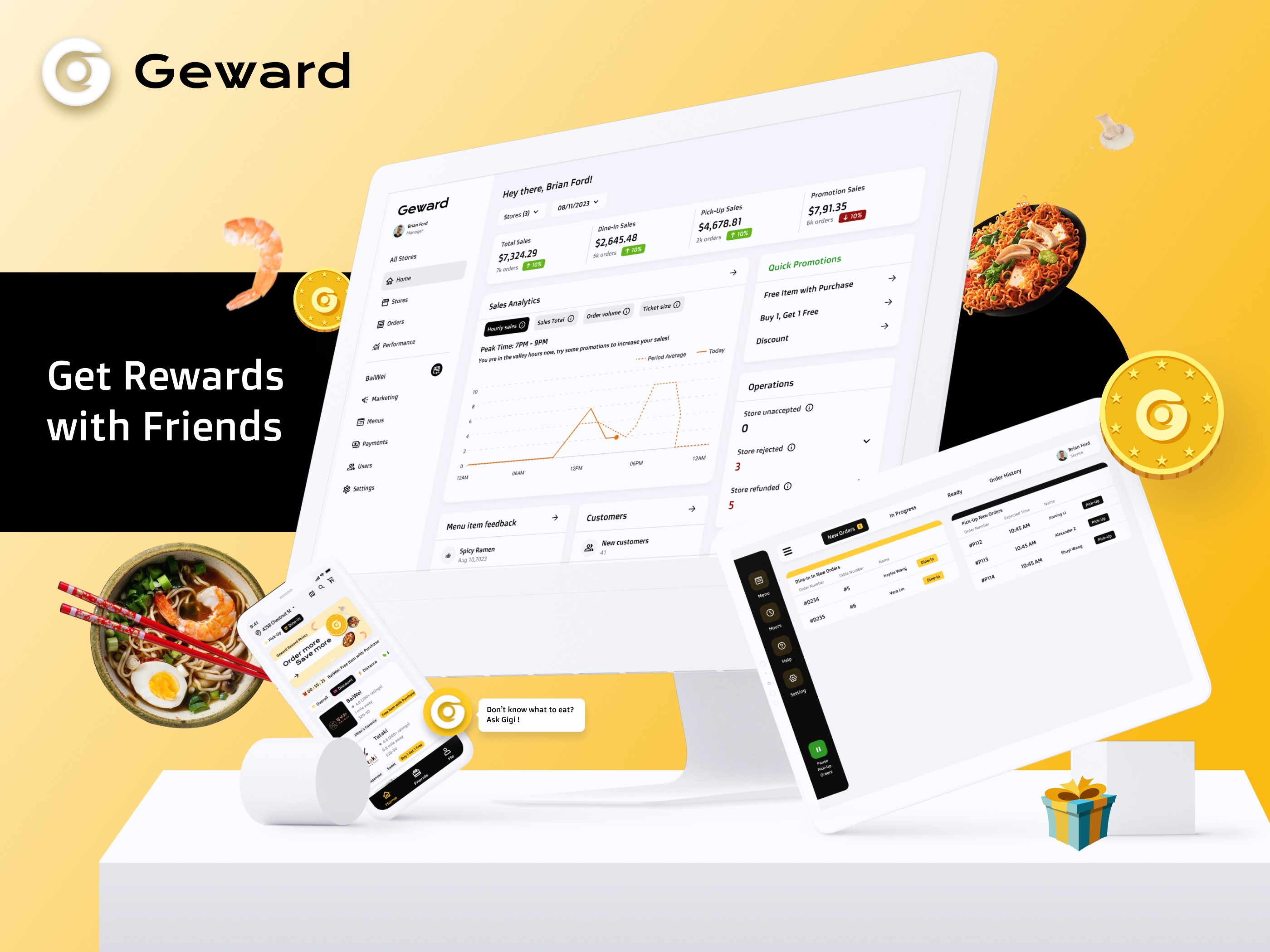 Geward is a social-driven B2C ordering platform that redefines convenience, affordability, and fun in the ordering experience. By blending social interactions, AI-powered recommendations, and an integrated rewards system, the platform transforms a typically solitary process into an engaging and shareable activity. Additionally, Geward empowers minority-owned businesses with a user-friendly cloud POS system, enabling them to implement dynamic pricing strategies, optimize operations, and foster customer loyalty.